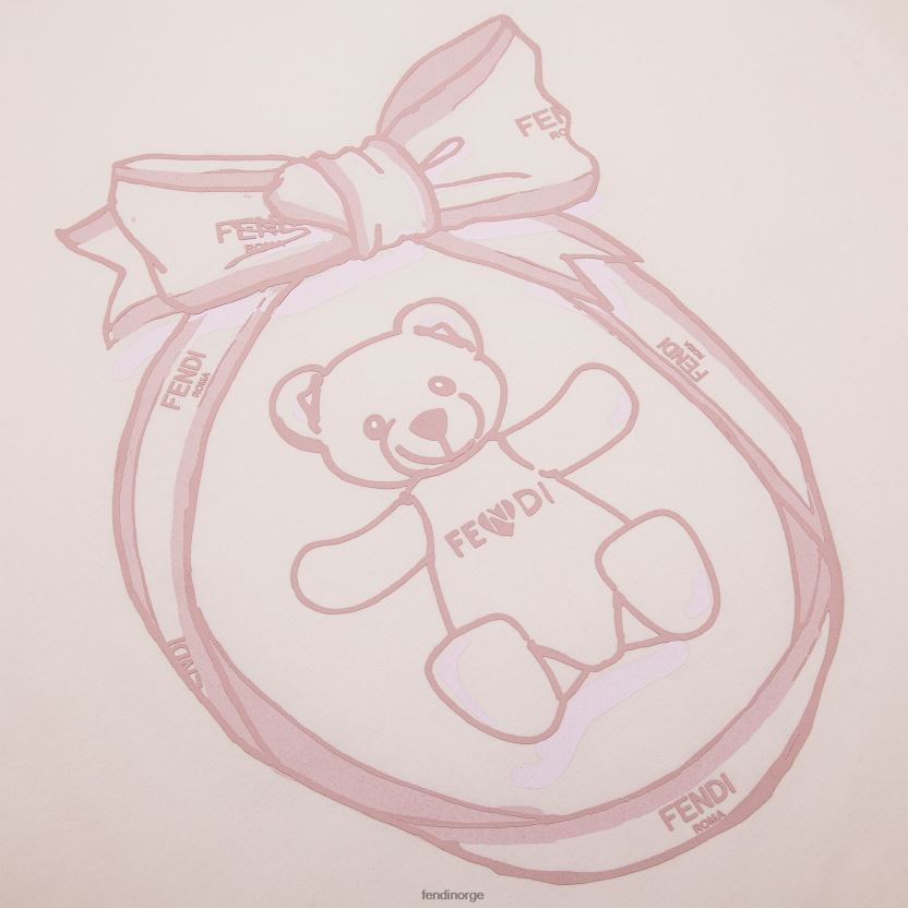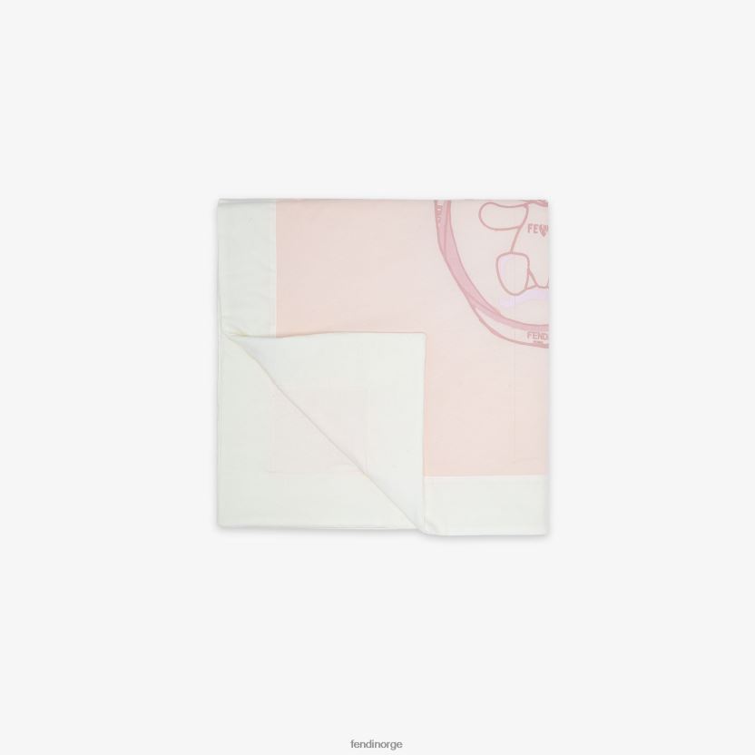 rosa jersey babyteppe med hvite kanter og ton-i-ton fendibjørn-trykk.