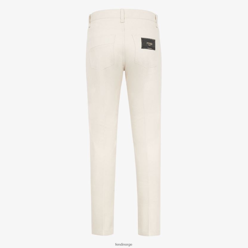 bukser med normal passform og rett ben. dart foran og sidelommer. skjult glidelås og stiftknapplukking. laget av hvit bomullsdenim. pyntet med jacquard fendi-etikett på baklommen.