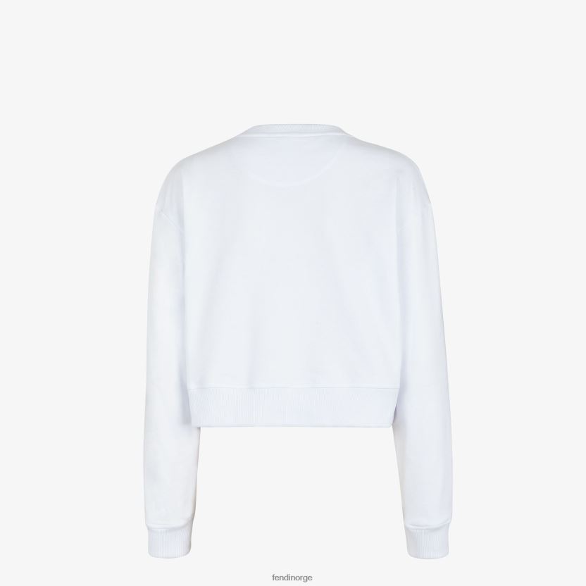cropped sweatshirt med rund hals og lange ermer. laget av hvit bomullsjersey. merket med fendi roma-bokstaver brodert i svart foran.
