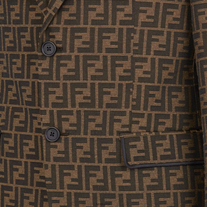boksy blazer med brede jakkeslag. paspolert brystlomme og klafflommer. to-knapper og splitt bak. foret. laget av brunt stoff med all-over jacquard ff-motiv.