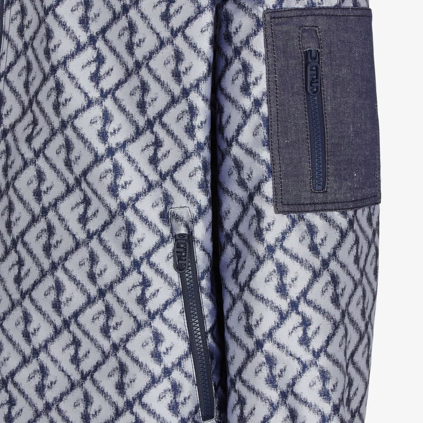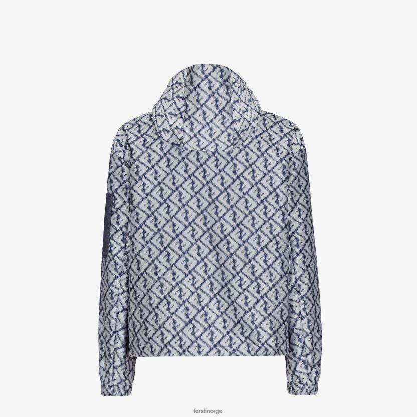 vindjakke med hette. sidelommer med glidelås og stretch-mansjetter. glidelås lukking. laget av nylon med ikat-effekt diagonalt ff-motiv trykt over alt i blått og hvitt. ferdig med tekniske nettingdetaljer og glidelåslomme på venstre erme.
