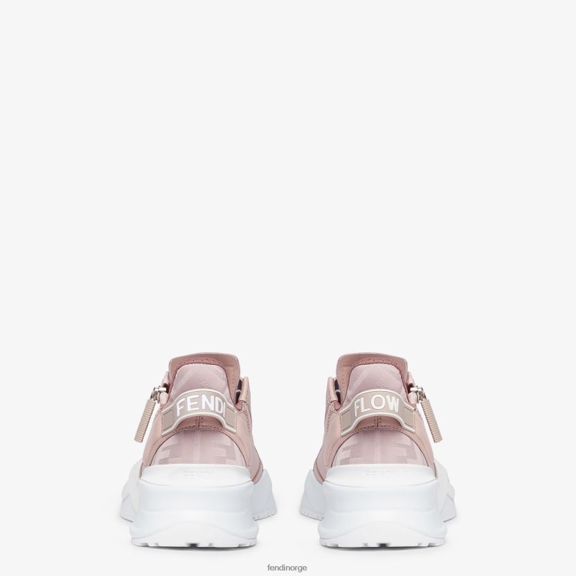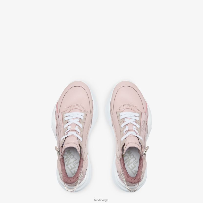 fendi flow sneakers med justerbare elastiske lisser og sideglidelås. tilpasset med gummiflik med preget logo på baksiden av hælen. laget av rosa skinn. ton-i-ton ff stoffdetaljer. 35 mm løpesåle i gummi med hvit diagonal f-detalj.