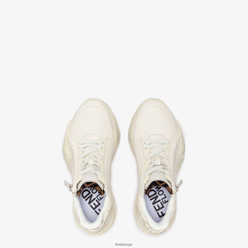 fendi flow sneakers med justerbare elastiske lisser og sideglidelås. merket med ff-mønster på pløsen og gummiflik med preget logo på baksiden av hælen. laget av hvitt skinn. stoffdetaljer med hvitt og blekgrå ff-motiv. 35 mm løpesåle i gummi med ton i ton diagonal f detalj.