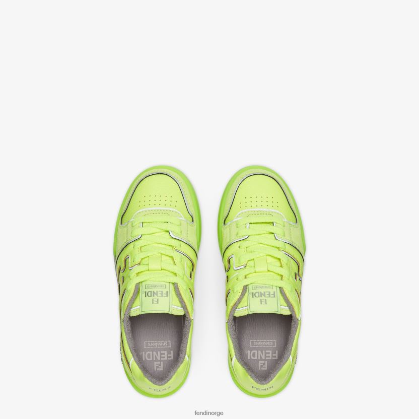 fendi match sneakers i neongult skinn med tone-i-tone semskede detaljer. ferdig med preget ff-motiv og kontrastrør. gummisåle med fendi-skrift på siden.