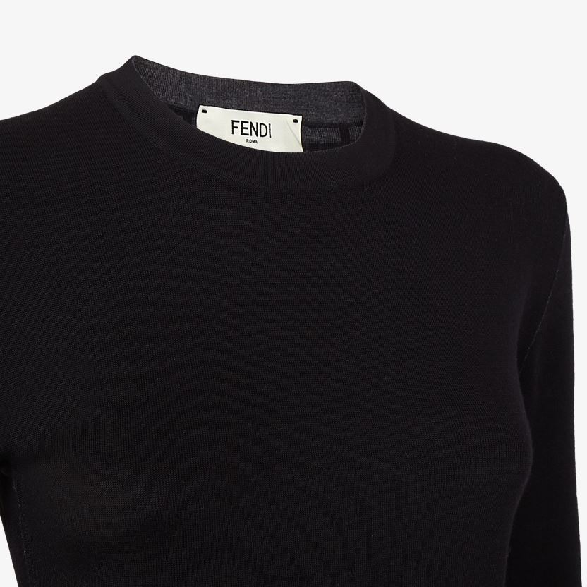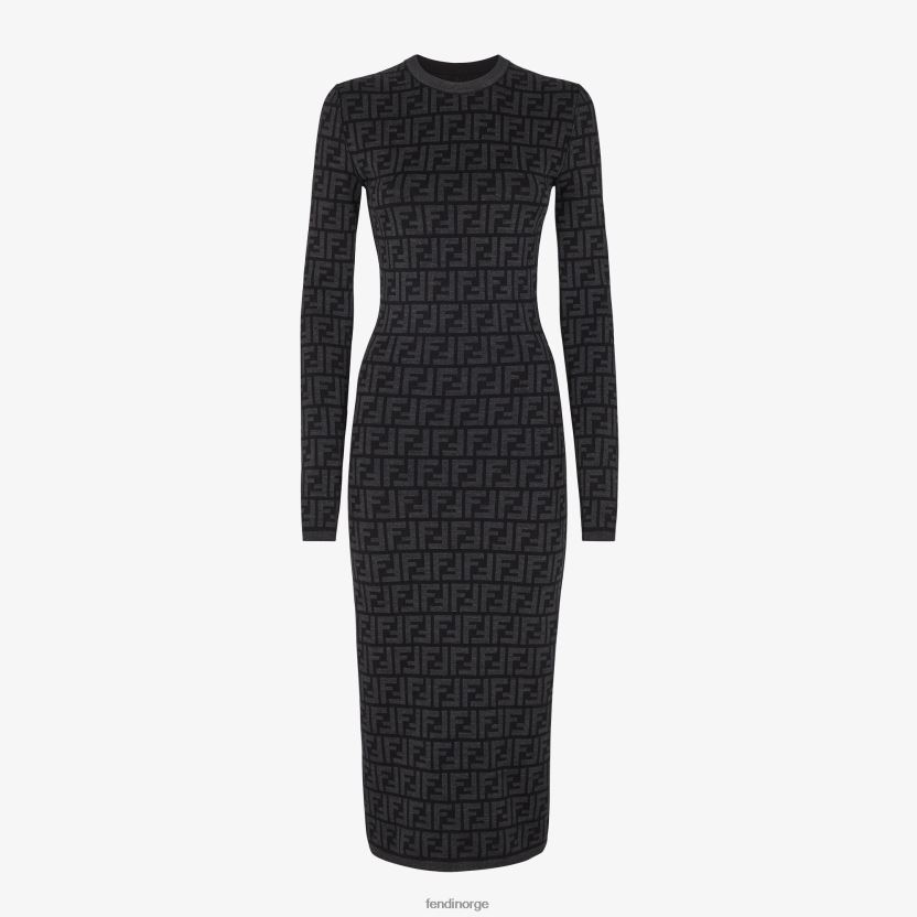 vendbar tettsittende kjole med rund hals og lange ermer. midtsplitt bak. laget av sort ull i tosidig strikk. fôr tilpasset med et jacquard ff-motiv i grått og svart.