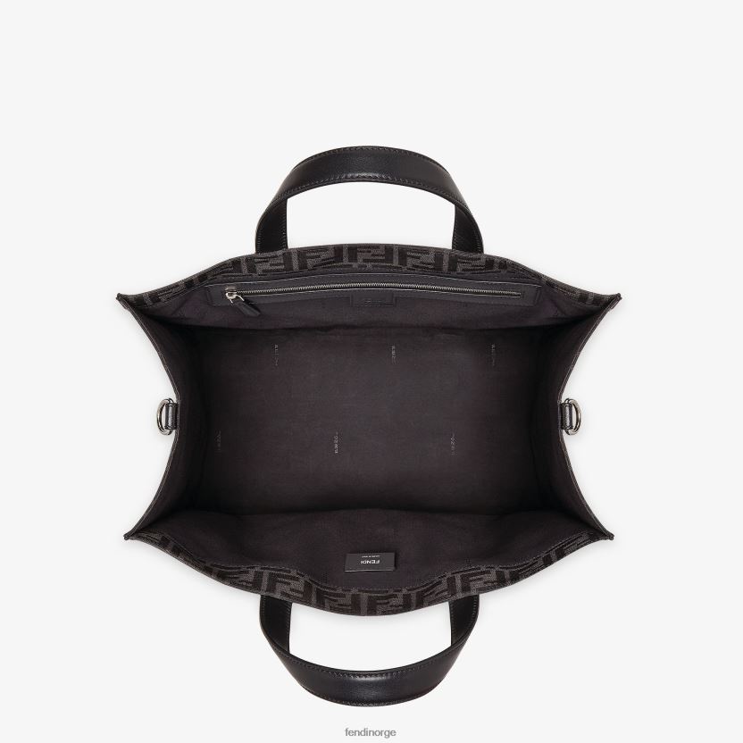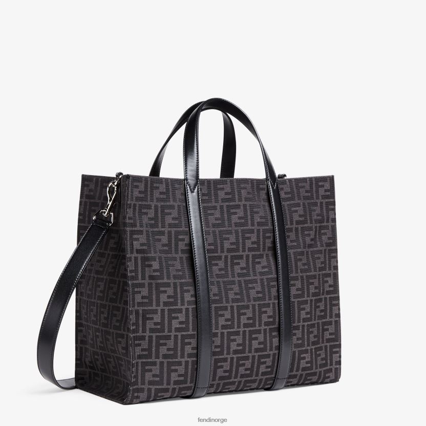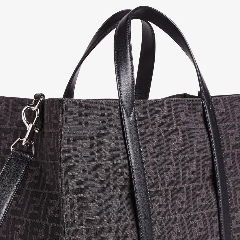 romslig shopper laget av resirkulert jacquardstoff med ff-motiv i grått og svart.