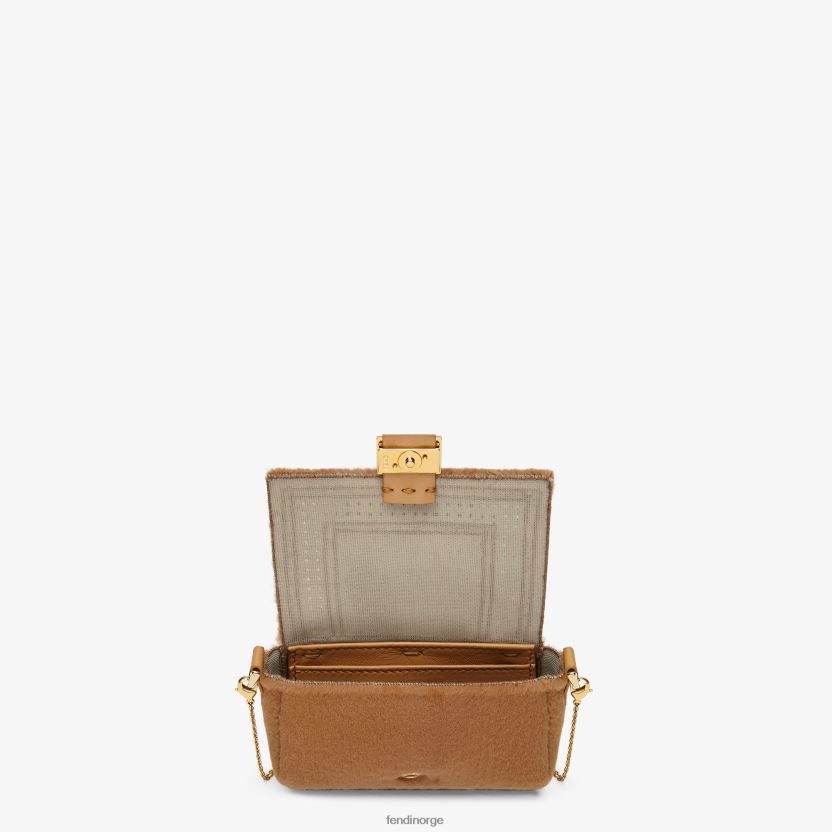 nano-versjon av den ikoniske baguettevesken, med klaff og ff-lukking med magnetlås. klipsen lar den festes som en sjarm til større vesker eller belter. den kan også brukes på kryss og tvers takket være den fine kjedejusterbare skulderremmen. kredittkortholder flat lomme innvendig. laget av brun mink. ferdig med mikroperforeringer på kantene av klaffen og tone-i-ton fôr i nappaskinn. metallvarer med gullfinish.