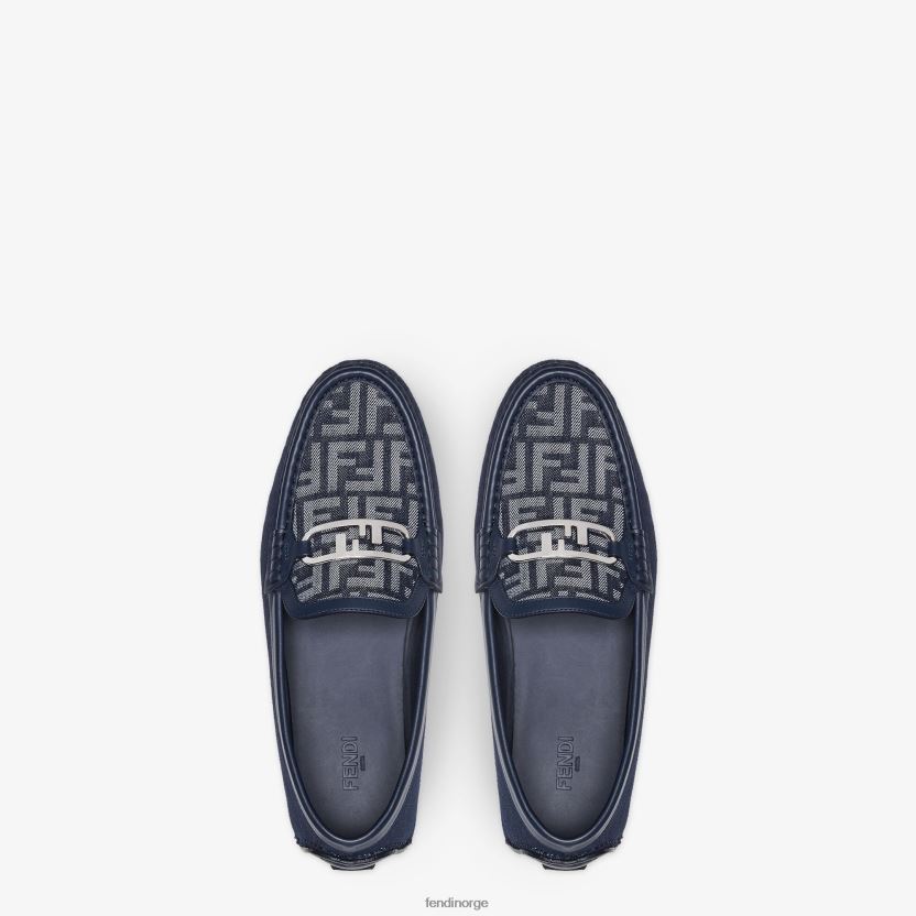 kjøreloafers med fendi o'lock-detalj. fleksible småsteinsåler. laget av blå denim med jacquard ff motiv på skoforkleet. blå skinnprofiler. metalltilbehør med palladiumfinish.