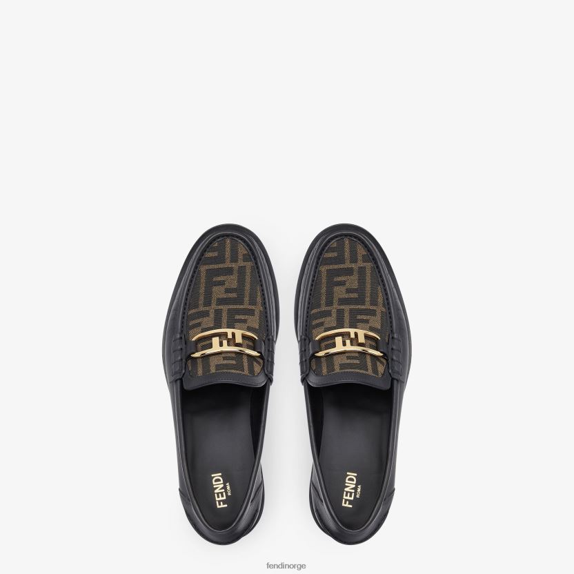 loafers med synlig sydd skoforkle og overdel dekorert med fendi o'lock-detalj. laget av svart skinn med ff jacquard stoffinnlegg. metallvarer med gullfinish.