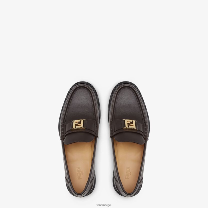 ff motiv loafer. laget av brunt skinn. skinnsåler. metallvarer med gullfinish.
