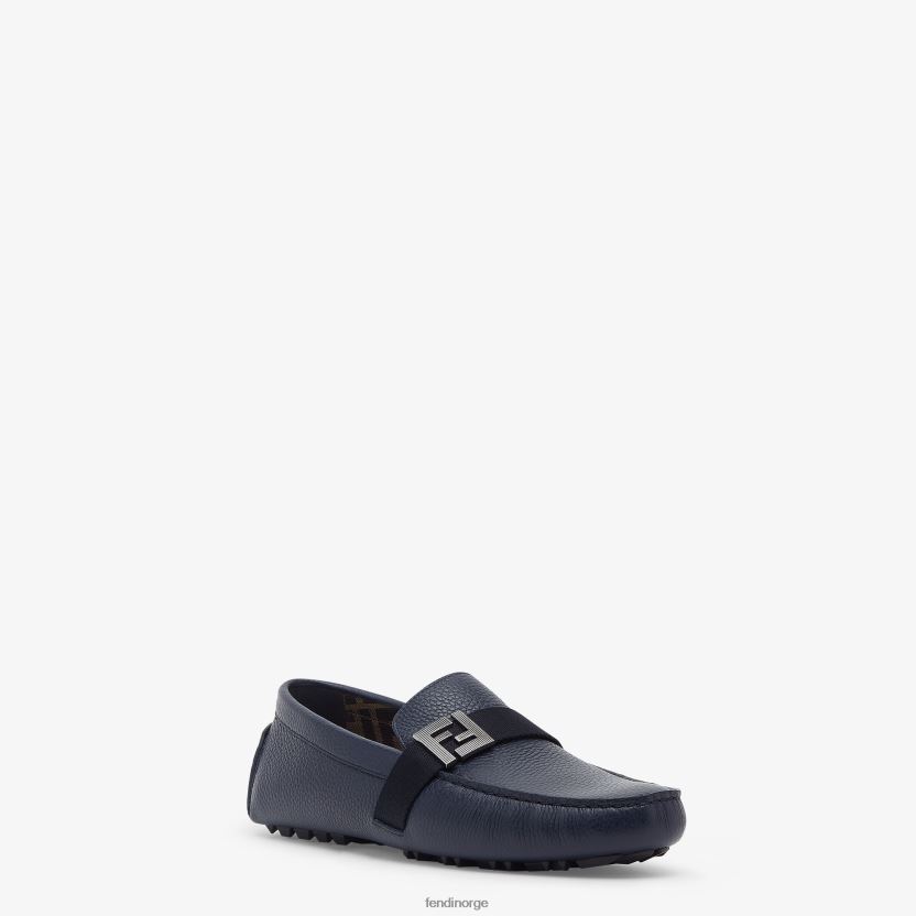 kjøre loafers. fleksible småsteinsåler. laget av blått skinn. matchende bånd med ff firkantet metalldetalj med palladiumfinish.
