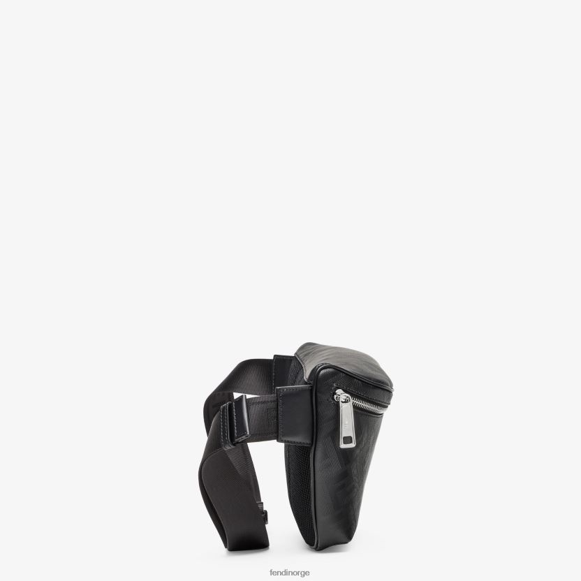 fendi shadow svart belteveske i skinn med stripet tekstur ff motiv. pyntet med en glatt ton-i-tone lær diagonal innsats.