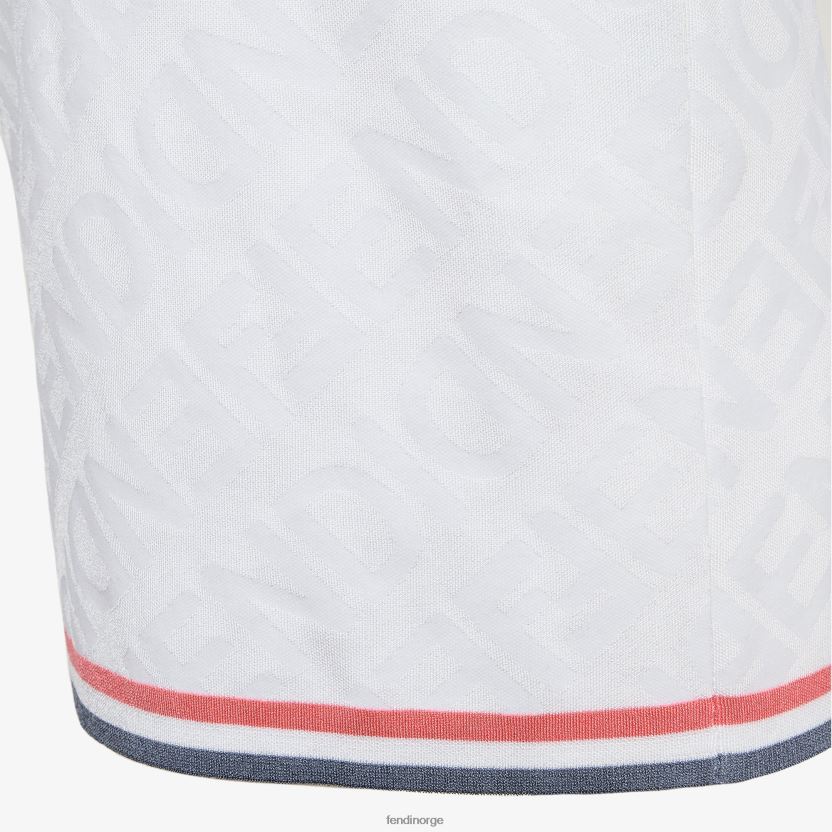 midi blyantskjørt. laget av hvit viskosestrikk, med all-over fendispeil med intarsia i samme farge. pyntet med en dobbel sporty stripe på bakgrunnen i rosa og lyseblått.