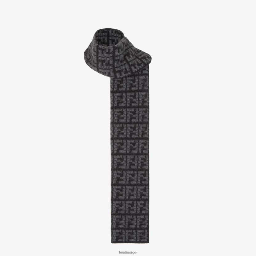rektangulært kashmirskjerf med den ene siden merket med et all-over svart og antrasittgrå jacquard ff-motiv.
