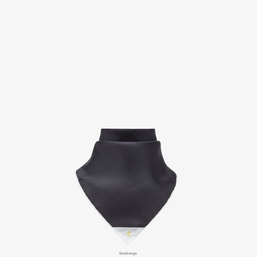 kvadratisk foulard laget av silke. ferdig med micro ff-motiv i sort og antrasittgrå.