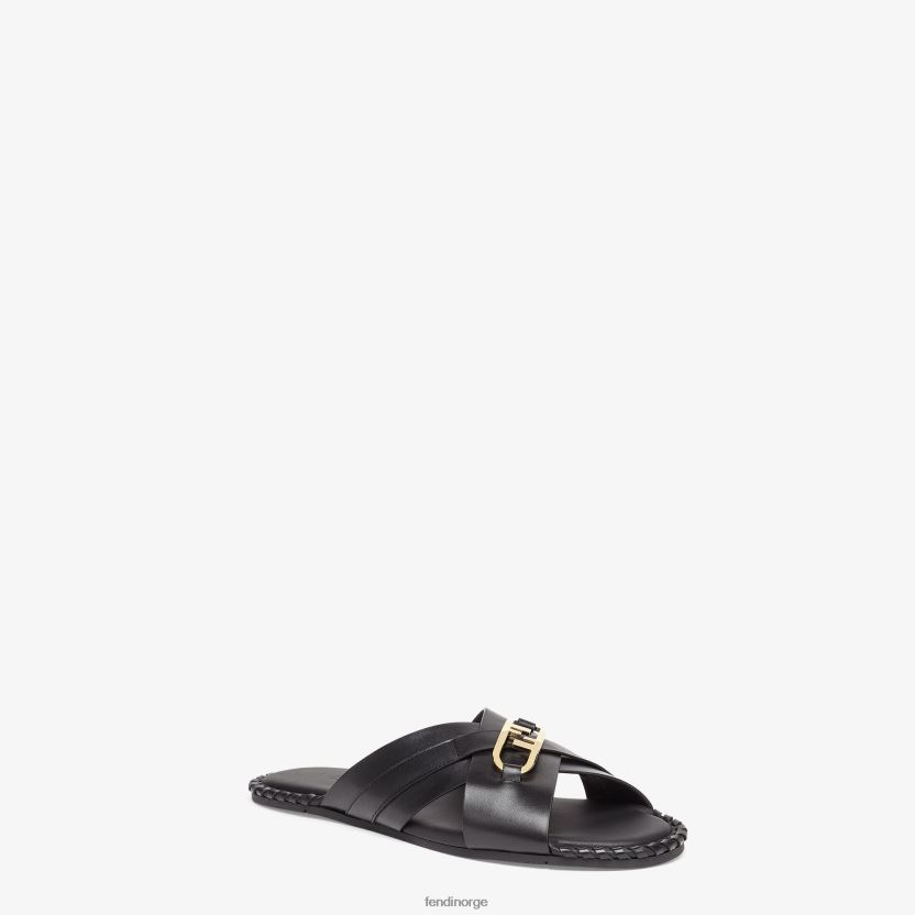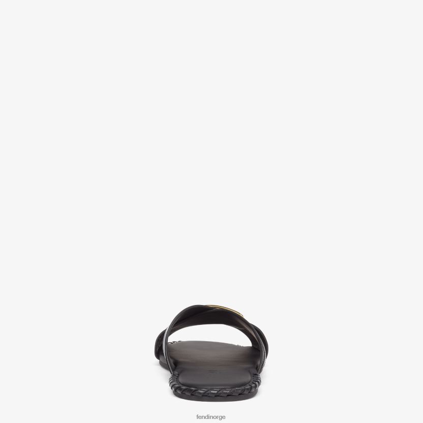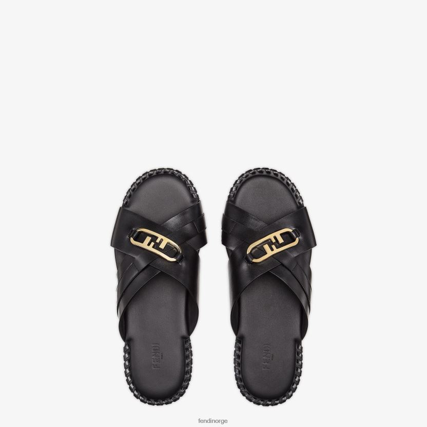 lysbilder hånd ferdig med sammenvevde svarte skinnstrimler. pyntet med et metall fendi o'lock-motiv med en gullfarget finish.