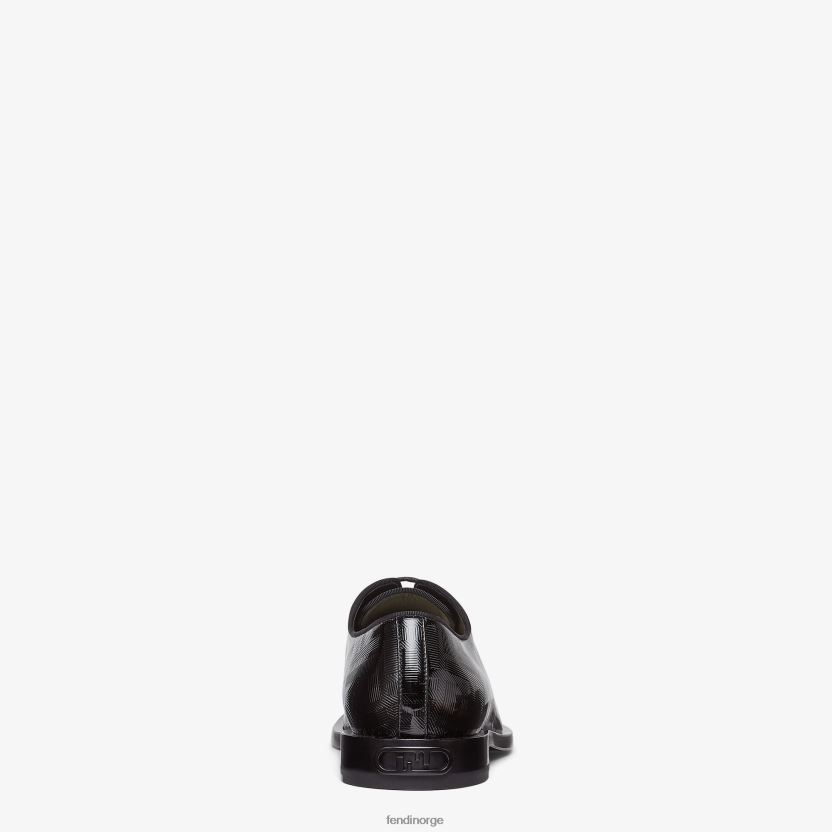 oxford snørebånd i sort lakk. pyntet med ton-i-ton ff-motiv og metall fendi o'lock-detalj på hælen.