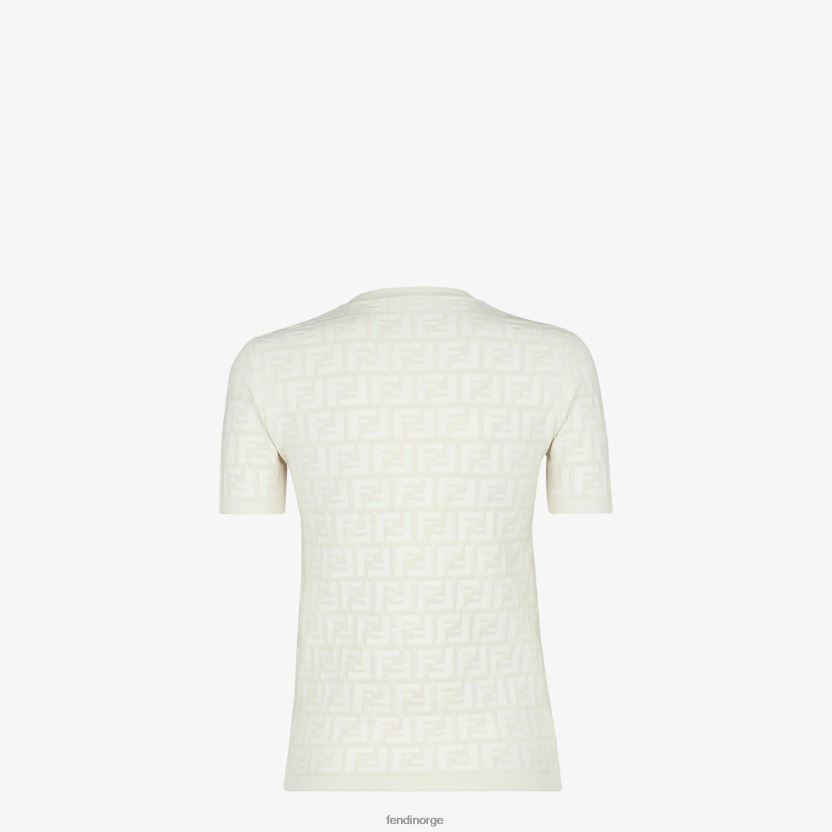 kortermet genser med rund hals. laget i hvit viskosestrikk med et all-over ff-motiv intarsia.